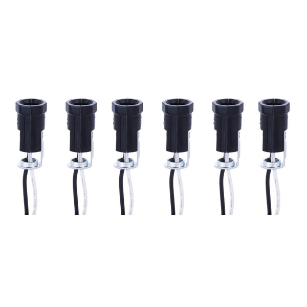 B&P Lamp® Pigtail E12 Candelabra Socket with 1/8F Hickey and 18 Inch Wire Leads, 6 Pack