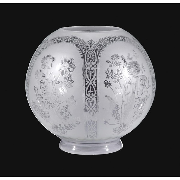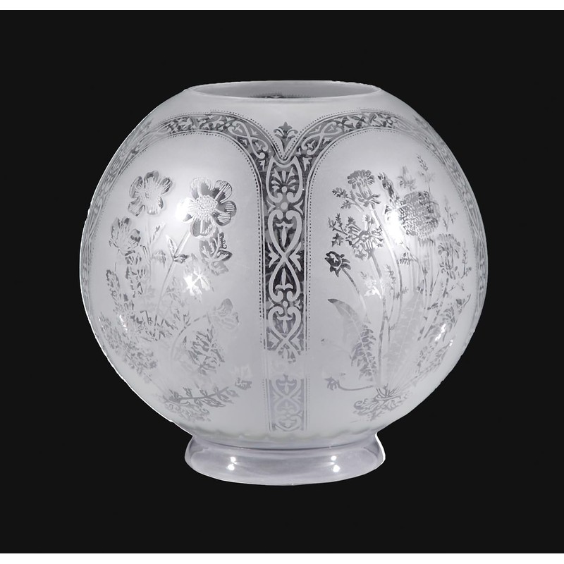 - This beautiful Victorian shade is unique in that it has 5 different, delicate and highly detailed floral scenes framed by arched borders 7-1/2 inch height and 8 inch diameter.