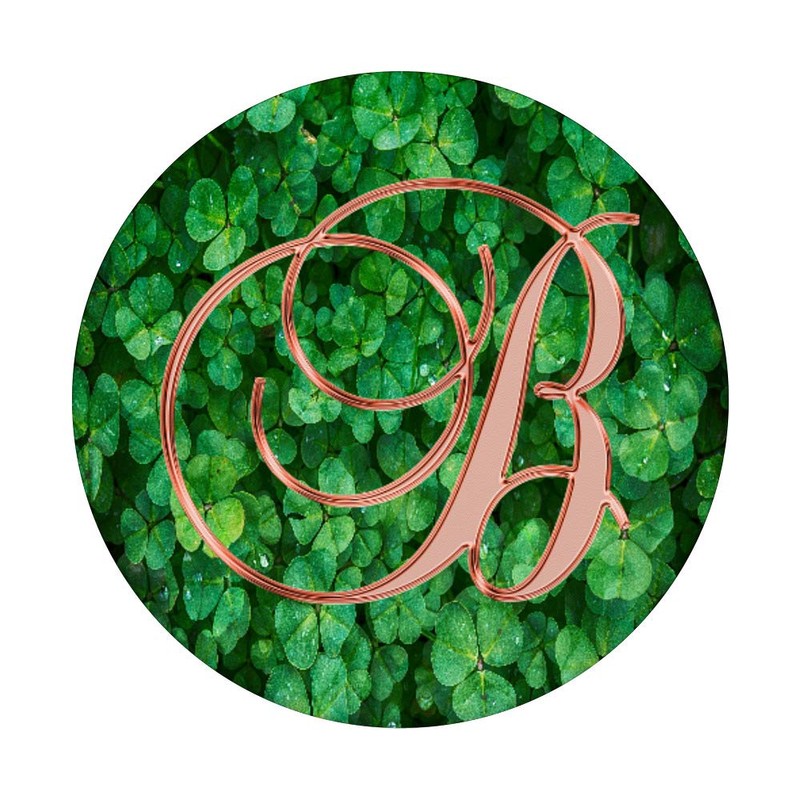 B Pink Clover Shamrock 4 Leaf Plant Initial Monogram Letter