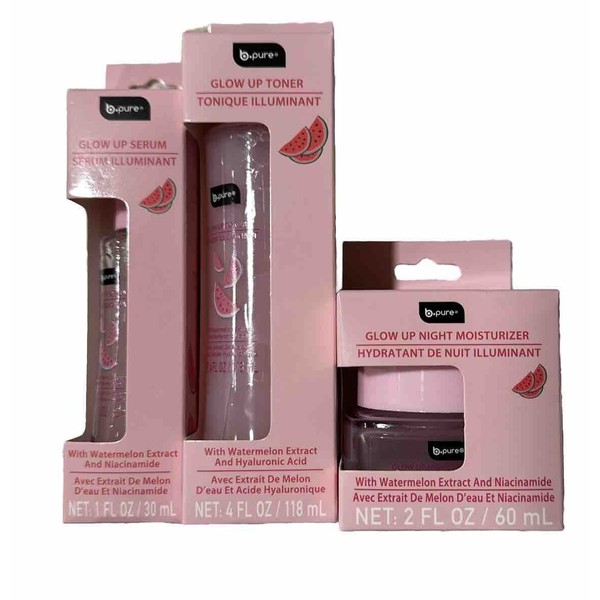 B Pure Set of 3 - B Pure Glow Up Toner, Serum & Night Moisturizer Watermelon