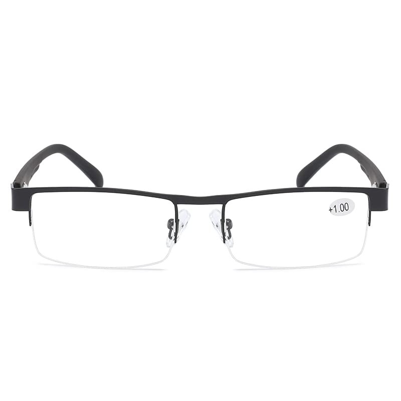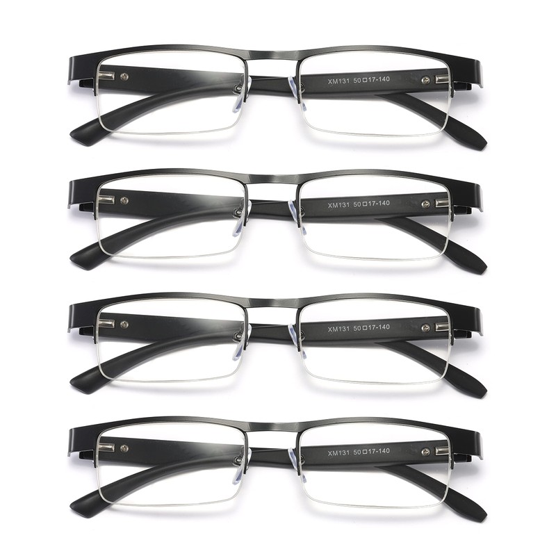 B&Q 4 Pack Metal Frame Half Frame Reading Glasses for Men Spring Hinge Readers With Classic Clear Lenses