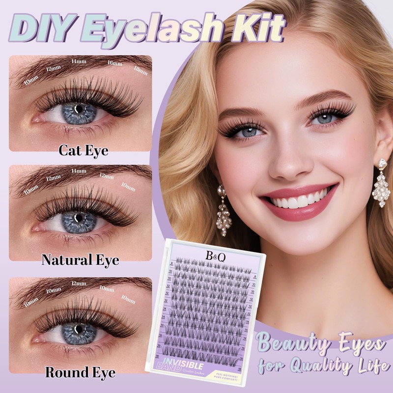 - 【Great Quality】: B&Q cluster lashes look real, not plasticky, and reusable with proper care. Easy to take off and these individual eyelashes will not be broken when getting them off the backing with tweezers. The lash cluster extensions last for weeks. Soft, lightweight, vegan, knot-free, and matte dark.