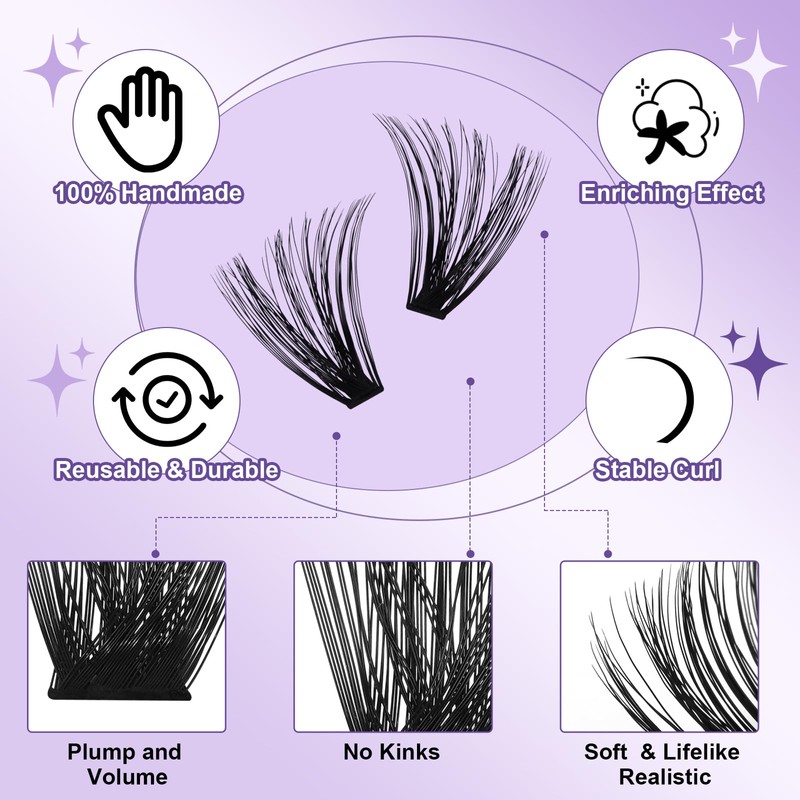 - Lifelike Visual Effect: 70D+90D DIY individual lash extensions is more plentiful than other DIY lashes. The effect on the eyes will have a strong visual impact. But the individual fiber texture is soft, very realistic and non-reflection. If you like dramatic eyelash look, you can't go wrong with this! DIY at home but salon effect.