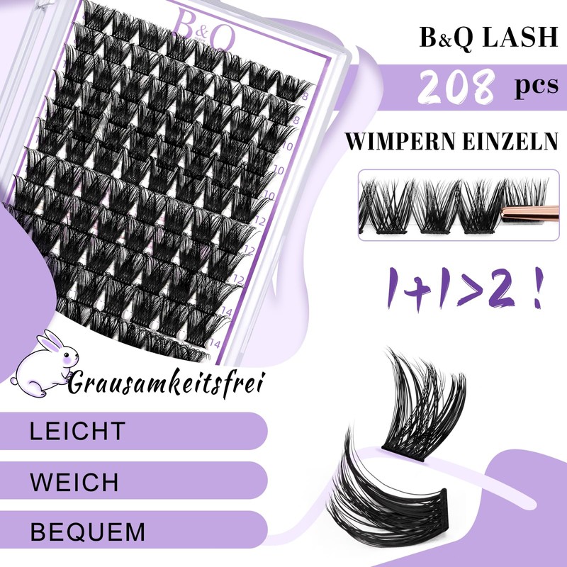 - DIY individual eyelashes clusters at home: 208 clusters in one piece. You can create eyelashes individually at home. This eyelash extension is easy to apply, get beautiful effects and do not fall apart easily. Individual eyelashes save a lot of time and money to create every eye.
