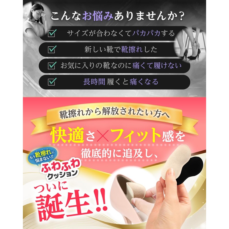 - (Adopts Fluffy Cushion) Uses a fluffy cushion with a 0.3 inch (8 mm) thick suede-like fabric. The anti-blister pad has excellent cushioning, so it reduces the burden on the skin, reducing the shaking of shoes and heels, reducing impact when walking