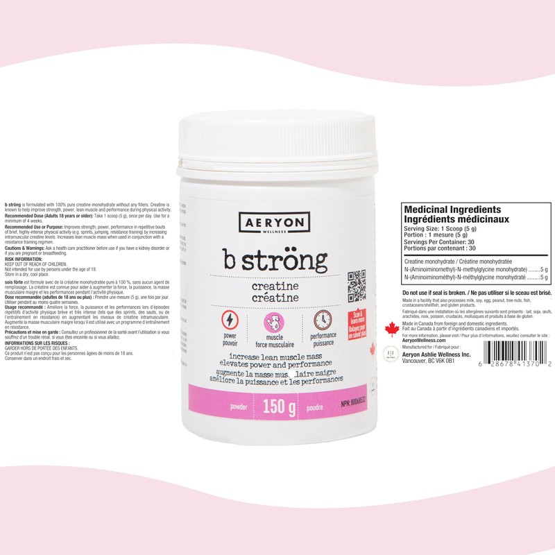 - [Why Choose B Ströng Creatine?] B Ströng is an all-natural supplement designed to support muscle development, enhance athletic performance, and improve muscle recovery. This creatine monohydrate powder contains no fillers, and is the most absorbable form of creatine.