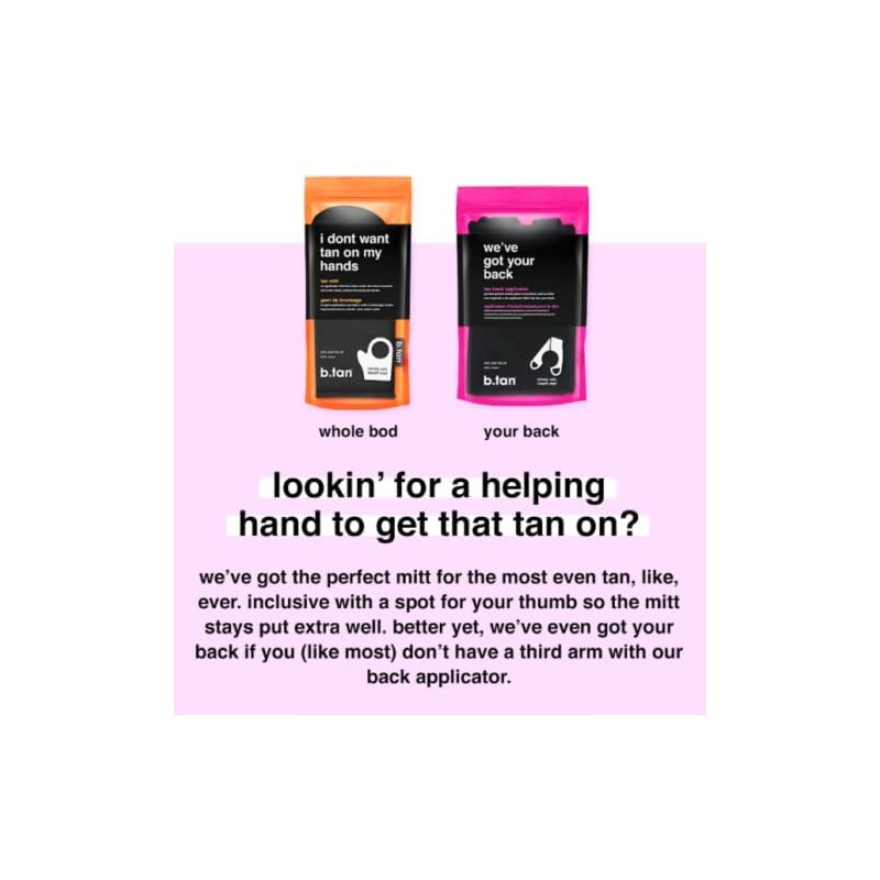 - BEST PRACTICE. firmly grasp each handle of the tan back applicator. think of it kind of like a towel, for tanning - for easy tanning. put a small amount of b.tan self tan mousse or lotion along the applicator. pull the applicator tightly across your back and glide all over your body in back and forth motions. ta-da! you're back in the tanning game