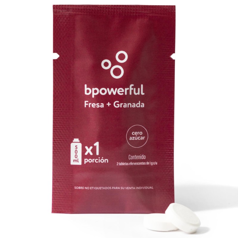 B Water - Bpowerful Daily Tabletas Efervescentes Rehidratantes | Tabletas Para Rehidratar Con Vitaminas C, E y B7, Leucina | Sin Cafeína | Energía Renovada | Sabor Granada Fresa | 12 Sobres