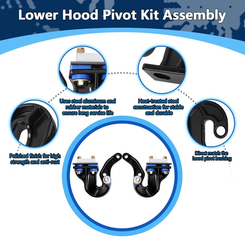- 18 Months: Inspected to ensure Product Durability;Package included Both Driver Side And Passenger Side Lower Hood Pivot Kit & Hood Hinge Pivot Bolt Kit & Hood Hinge Pivot Bushing Bracket Kit(as the pictures shown);If the part has any problem,please reach out to us