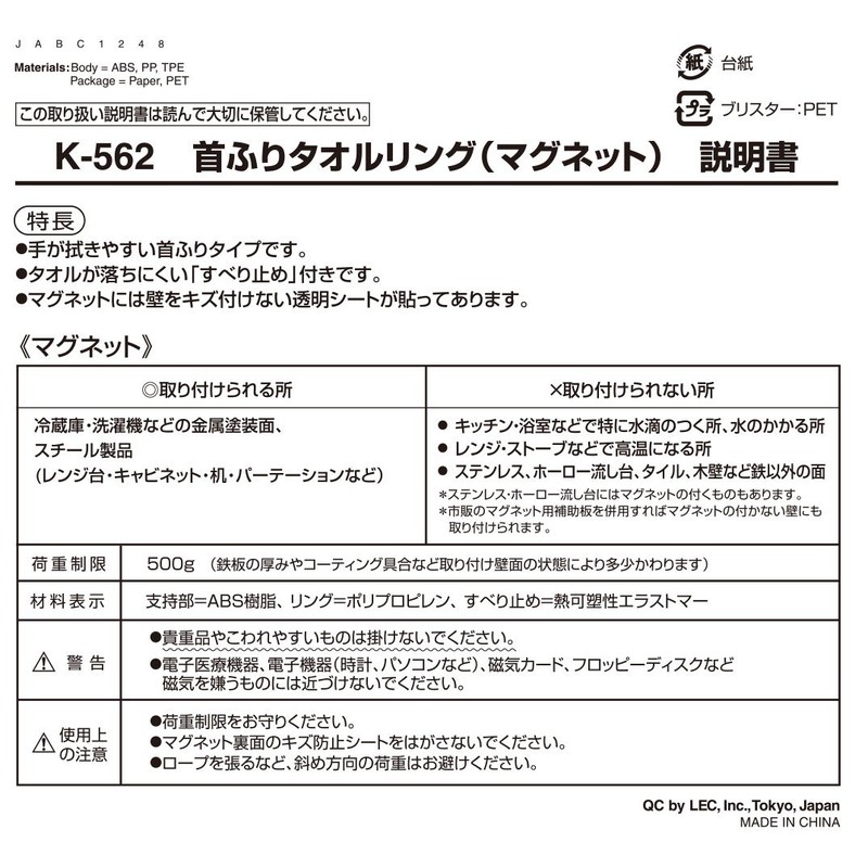 レック 首ふり タオルリング ( タオル掛け ) マグネット