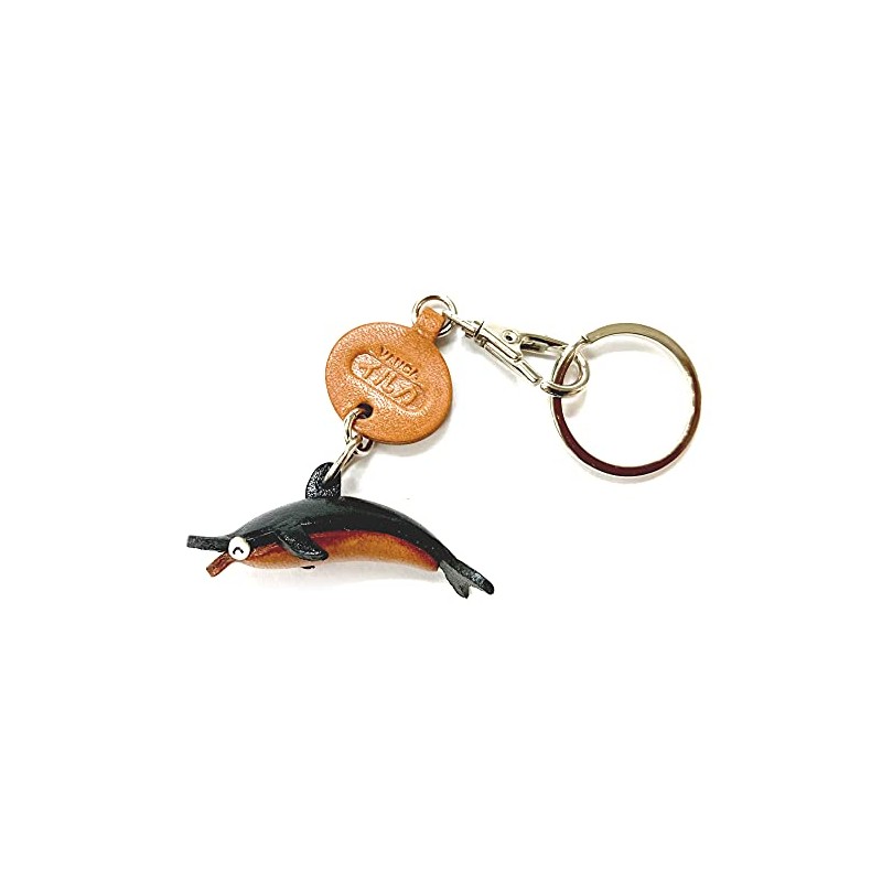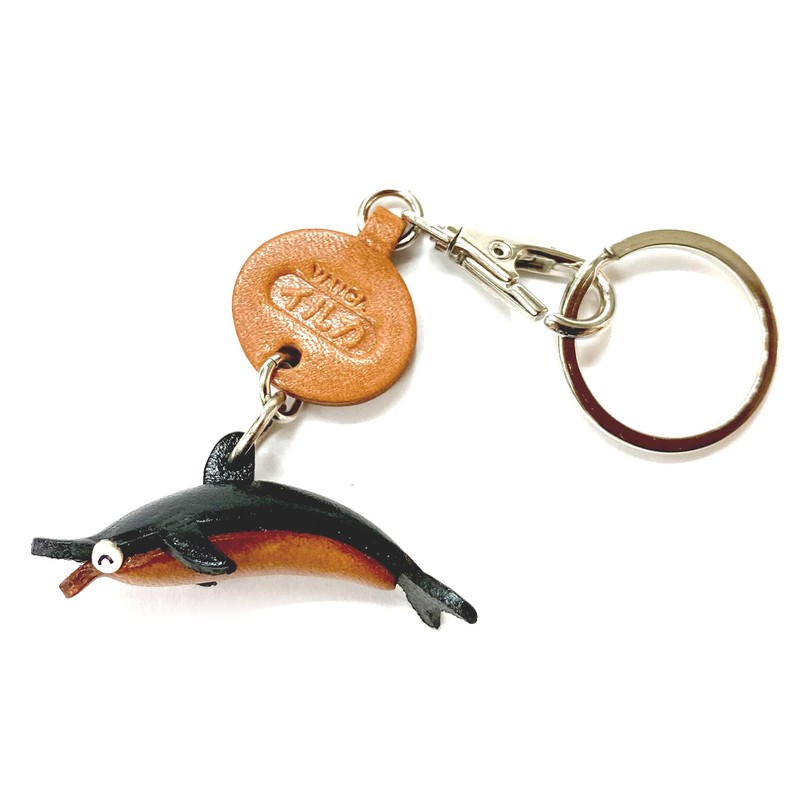 イルカ 本革製 魚 キーホルダー バンカクラフト革物語 (日本製 ハンドメイド)