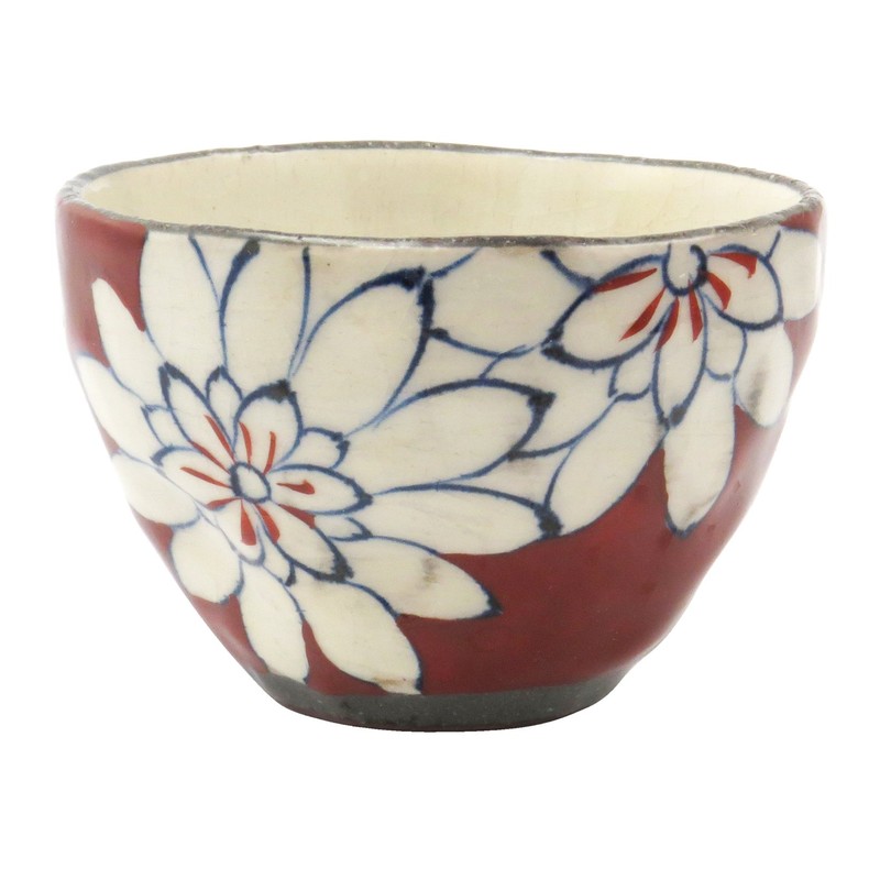 波佐見焼 福昭窯 粉引 手描きダリア 波碗 赤