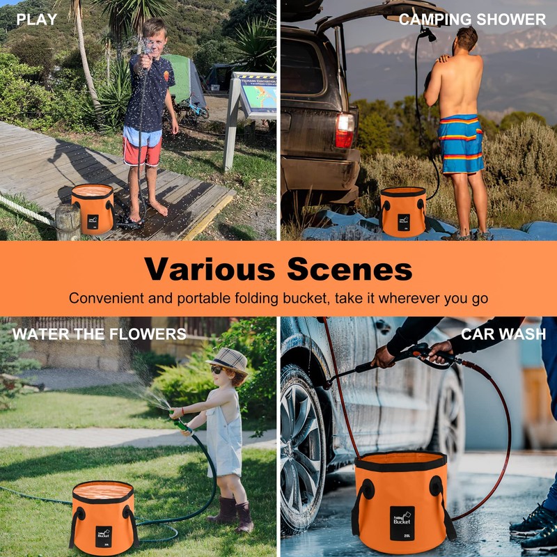 - Portable and Foldable Design: Our B013 Collapsible Bucket with Handle is the ideal solution for your outdoor and indoor needs. With a generous capacity of 20 liters (equivalent to 5.28 gallons), this bucket easily folds down to a compact size for convenient storage and transportation, making it perfect for camping, RV trips, gardening, and more.