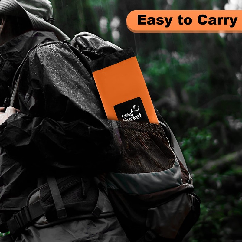 - pace-Saving Storage: Our collapsible water bucket features a compact design that saves valuable storage space. When not in use, it folds down easily, taking up minimal space in your backpack, cupboard, or car trunk. Experience the convenience of a reliable water bucket without compromising precious storage room.