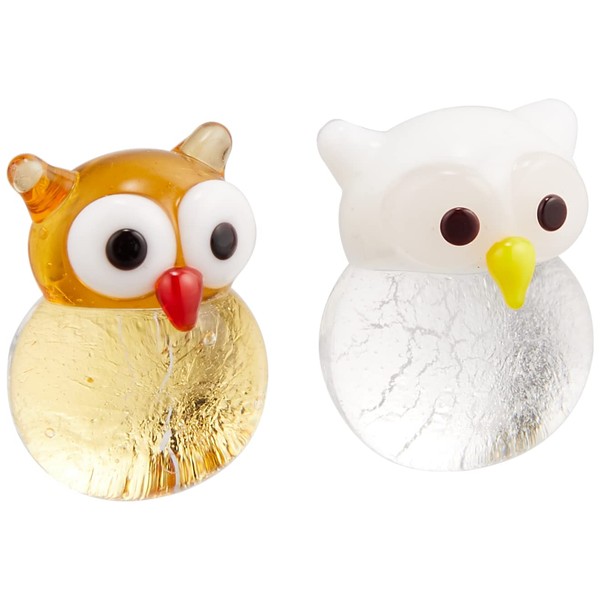 かわいい 手作り ガラス細工 金銀 ふくろう お守り
