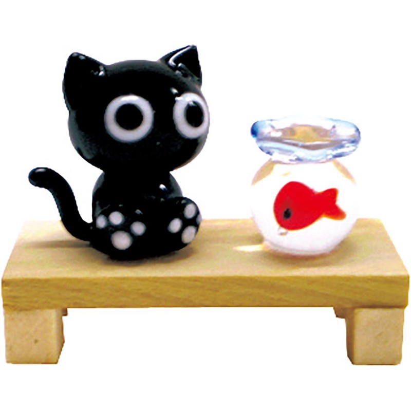 フォーカート かわいい 手作り ガラス細工 縁台 クロネコ