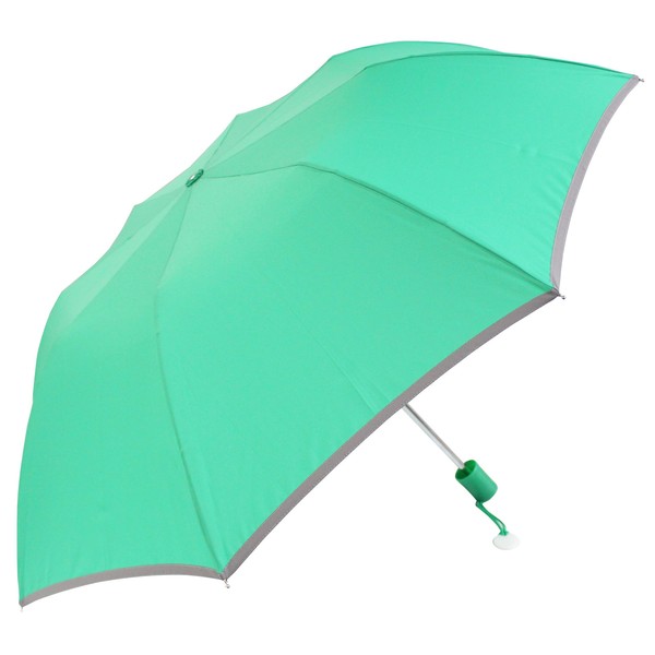 安全 反射テープ付 指をはさまない 開閉らくらく 無地 軽量 子供用 折りたたみ傘 53cm (グリーン)