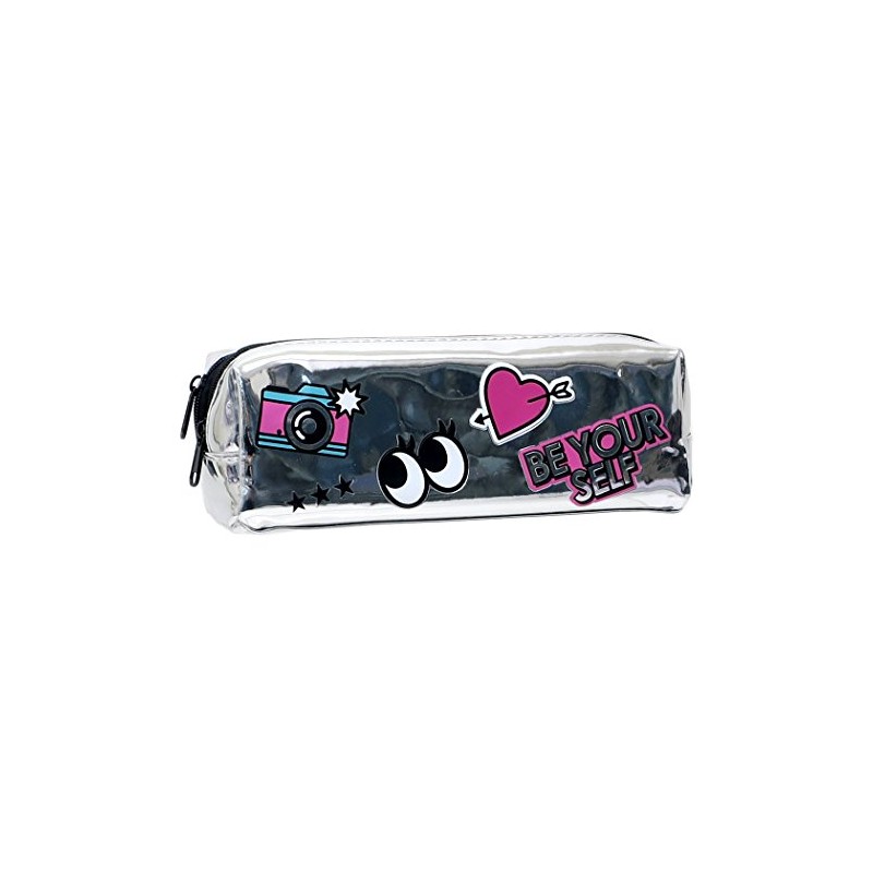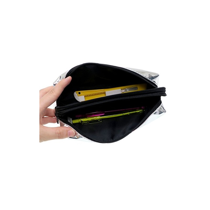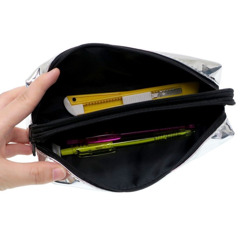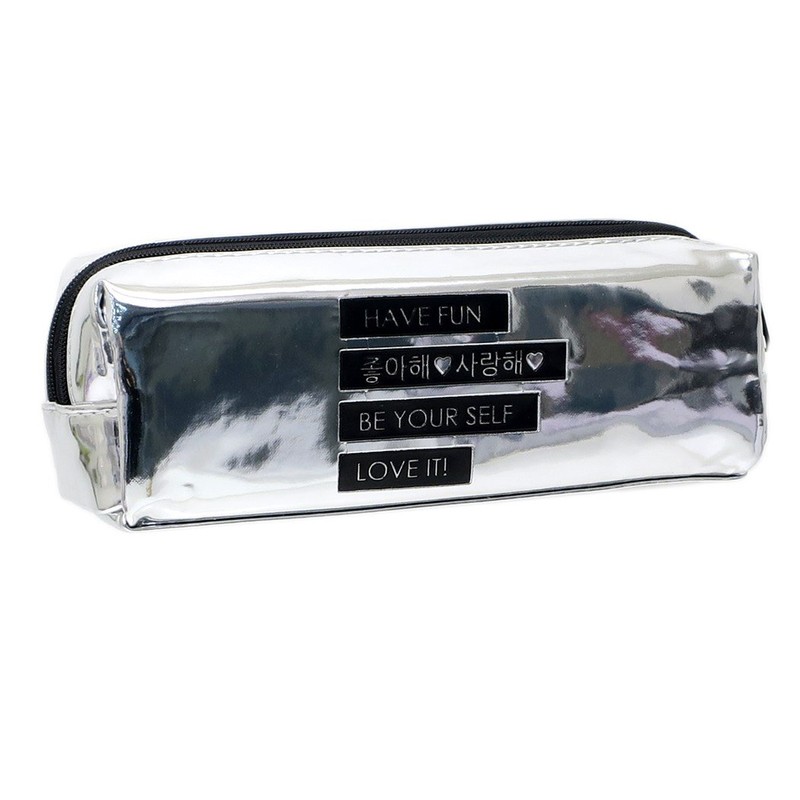 メタリック[ペンポーチ]ツインファスナーペンケース/シルバー クラックス 筆箱 オルチャン グッズ 通販