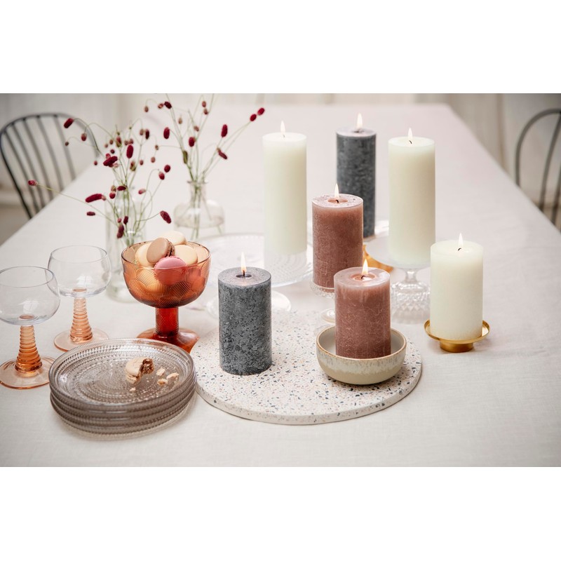 This new rustic candle range from Bolsius is inspired by the colors and textures of nature. Free from palm oil or animal fat, they’re made with a plant based wax and a cotton wick. On top of that, these new renewed rustic candles now burns even longer. With a large flame and soft light, these Bolsius Rustic Pillar Candles bring atmosphere to any environment.