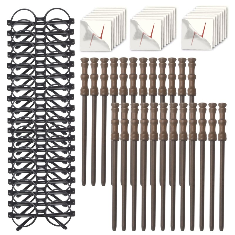 ウィザードパーティー用品 – 魔法使いメガネ ラウンドフレーム付き レンズなし 魔法の杖鉛筆と稲妻の傷跡 テンポラリータトゥー 魔法使いテーマ 誕生日パー...