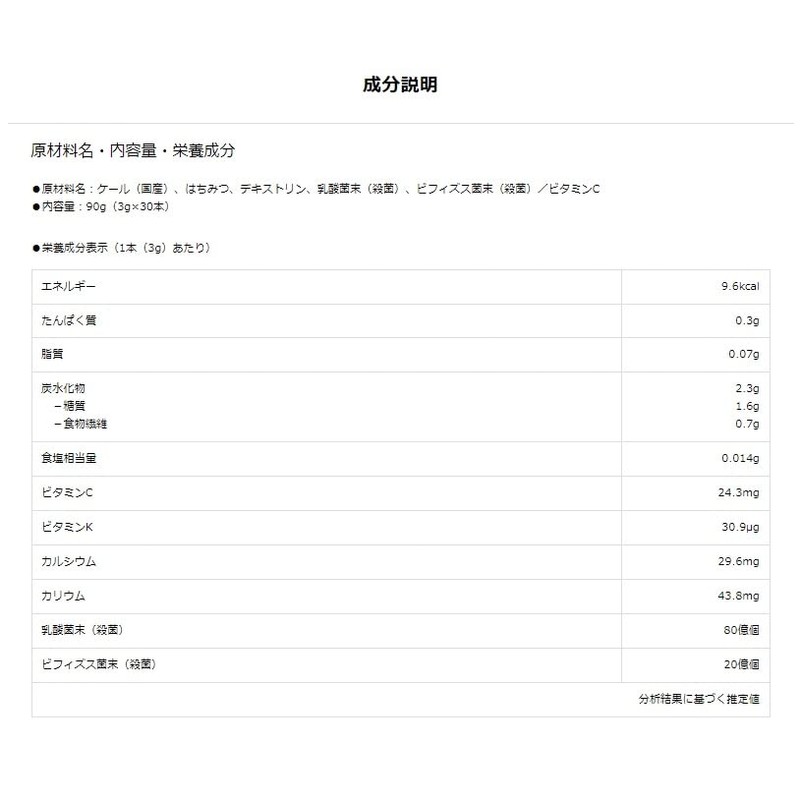 - 内容量:90g(3g×30本) 1日の摂取目安量:1~2本