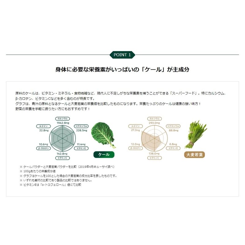 - 国産ケール100%×山田養蜂場のはちみつ×Wの善玉菌100億個※1本(3g)あたり