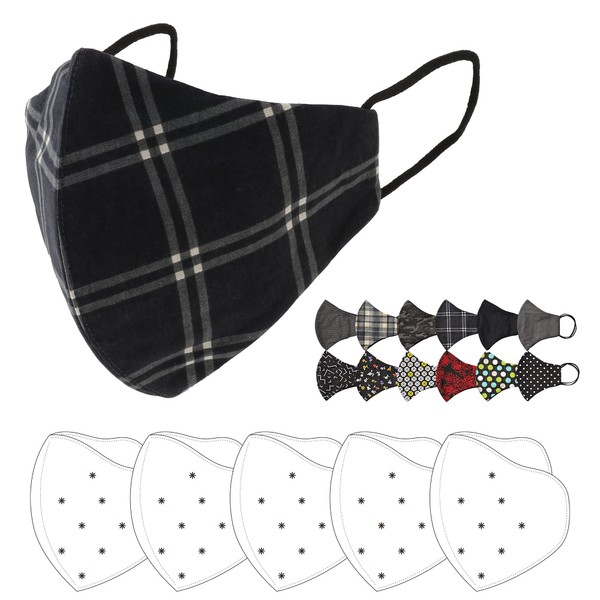 [ジェニファー] 【マスク5枚 + 高機能3層フィルター5枚入】ポケット付き 2層 立体構造 コットンマスク 洗える 個包装 (黒(水玉))