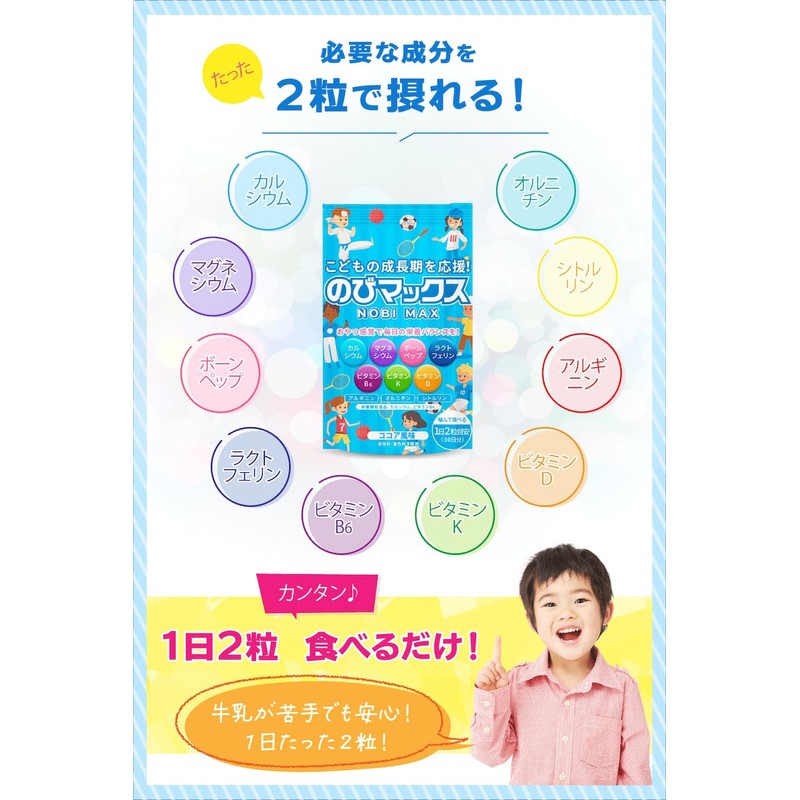 - 【新味販売記念!お試し価格で販売中(希望小売価格 1,680円)】子どもの成長期を応援!少食、偏食のお子様や部活動を頑張るお子様に栄養バランスを考えた子ども向けサプリです。日本・海外で特許取得のボーンペップ配合。カルシウム、マグネシウム、ビタミンB6、ビタミンk、ビタミンD、アルギニン、オルニチン、シトルリン、ラクトフェリンなど、成長期に大切な栄養素を配合しています。カルシウムは、国が定めた1日当たりの摂取目安量を1日2粒で接種することができます。ボーンペップは、卵から生まれたヒヨコがすぐに歩き出すことに着目し、卵黄の中で骨の伸びを助ける成分として発見され、カルシウムとの組み合わせによる摂取が推奨されています。