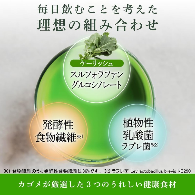 - 内容量] 3.5g×30袋/1箱 [原材料名] アブラナ科野菜(ケーリッシュ)粉末(国内製造)、フラクトオリゴ糖、大麦若葉粉末、還元麦芽糖水飴、乳酸菌粉末、(一部に大豆を含む) [アレルギー物質(特定原材料とそれに準ずるもの)] 大豆 [栄養成分(1袋/3.5g当たり)] エネルギー5~18kcal、たんぱく質0.2~0.6g、脂質0~0.2g、炭水化物1.6~4.3g(糖質0.5~2.2g、食物繊維1.1 ~2.1g)、食塩相当量0~0.02g 、カリウム30~95mg、カルシウム8 ~ 31mg、鉄0~0.5mg、マグネシウム2~6mg、ビタミンA 4~26μg、ビタミンE0~0.4mg、ビタミンK23~63μg、葉酸6~18μg β-カロテン51~300μg、スルフォラファングルコシノレート 5~11mg ●ビタミンAはカロテンより換算 ※この商品は、くるみ、小麦、乳成分、オレンジ、ごま、大豆、バナナ、もも、りんごを含む製品と共通の設備で製造しています。