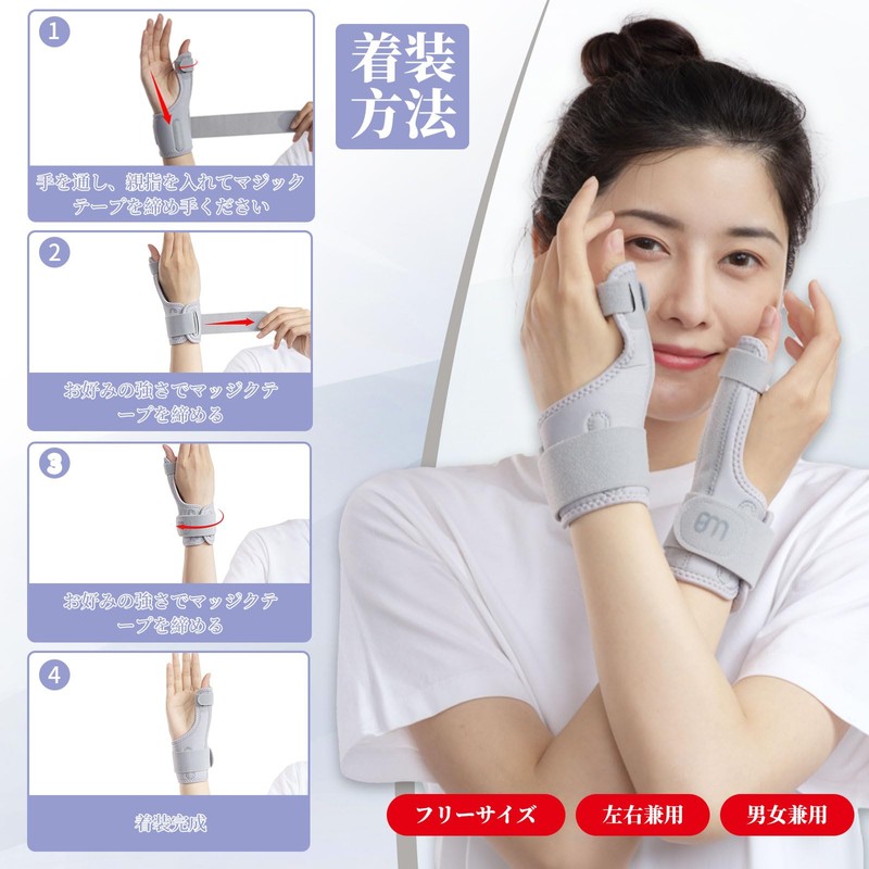 - 腱鞘炎 サポーター:プレートやマジックテープで親指と手首を固定出来るので、痛を緩和できます。首と親指の固定、保護など、過度な動きを制限しサポートします。ソコン作業や育児など、手を酷使する人におすすめです。