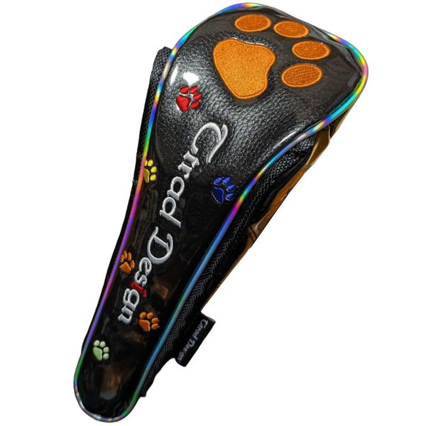 肉球刺繍入り ゴルフヘッドカバー マグネット式 ドライバー用 フェアウェイ用 ユーティリティー用 (ブラック/オレンジ, ユーティリティー用)