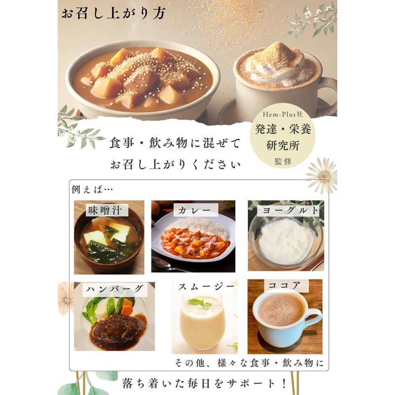 - 食事や飲み物に混ぜることで、固形サプリだと気になる方でも異物感が無く毎日自然に摂取可能