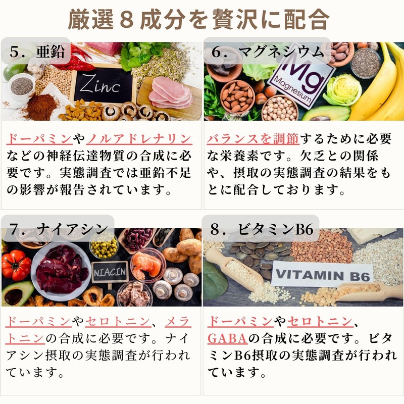 - 最新の研究結果をもとに、専門家が厳選した8種の発達サポート成分を特別配合