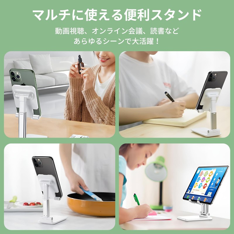 スマホスタンド 折り畳み 高さ調整可 コンパクト スマホ立て 携帯スタンド 卓上 スマホスタンド 角度調整可能 持ち運び 滑り止め付き ブラック ホワイト 折りたたみ式スマートフォンスタンド デスクトップホルダー (ホワイト)