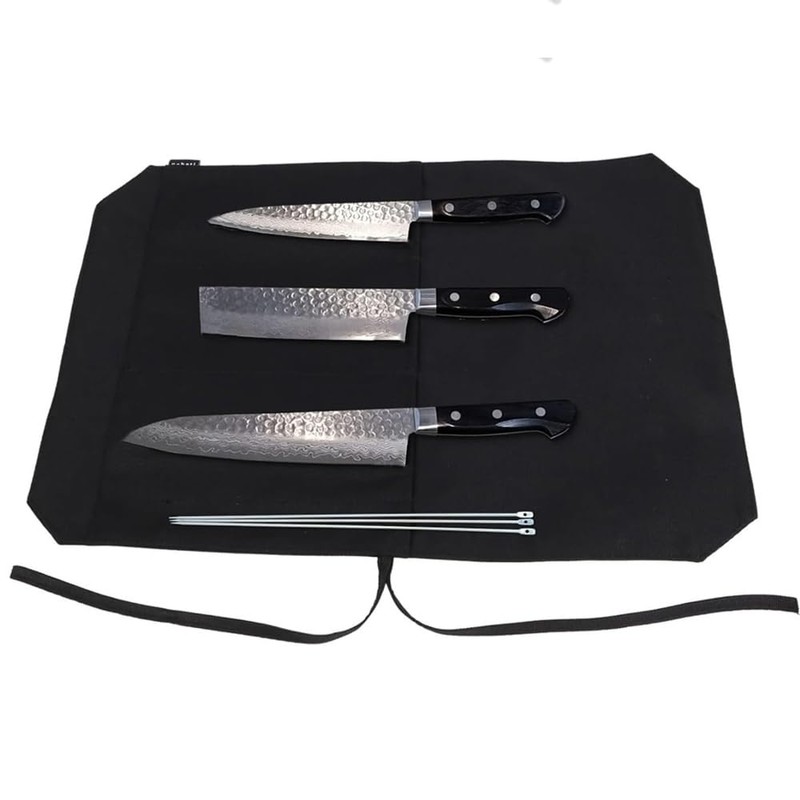 包丁ケース 帆布製 軽量 持ち運び 布巻き 包丁巻き キャンプ アウトドア 料理教室 業務用(ブラック)