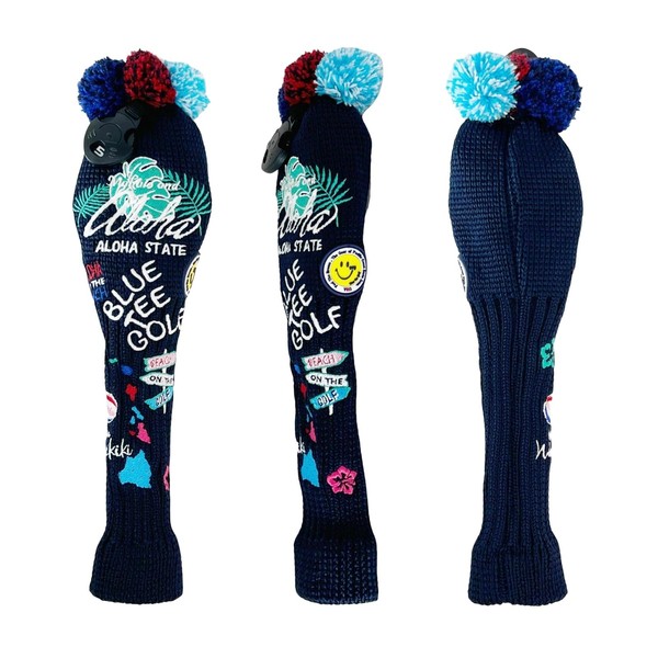 ブルーティーゴルフ アロハオンザビーチ ニット キャットハンド ヘッドカバー, ネイビー/ホワイト, ハワイアンデザイン (ネイビー, ユーティリティ)