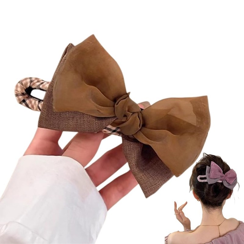 ヘアクリップ大きめ 蝶結び プリンセスヘアピン ヘアアレンジ 髪飾り レディースファッション 韓国風 シンプル エレガント ヘアアクセサリー キッズ 成人 通勤 結婚式 パフォーマンス パーティー (茶色)