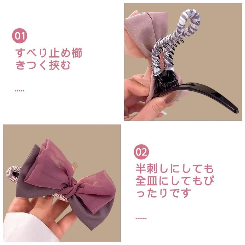 - 特徴:ヘアピンに可愛いリボンデザインを採用し、クリップで髪を引き締めて固定できるので、ロングヘアやボリュームのある人にも適しており、スマートで美しい髪型を簡単に作ることができ。