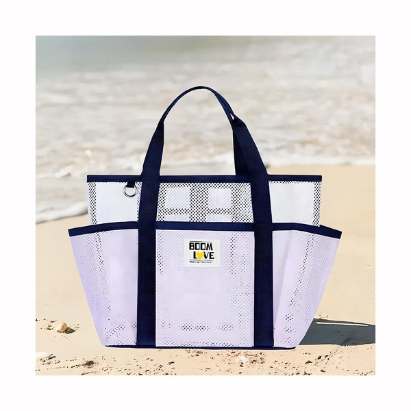 プールバッグ おしゃれ ビーチバッグ メッシュ 大容量 (パープル)