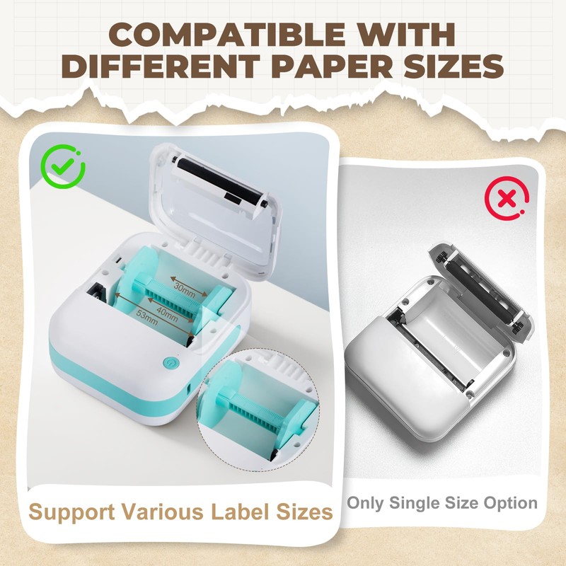 - Portable & Convenient: The mini thermal printer has a visual paper bin design that allows you to see the consumption of printing paper at any time, small and portable size, can be put into a bag to carry, placed on the desktop does not take up space, can record study notes and organize work plans at any time, making your life in order