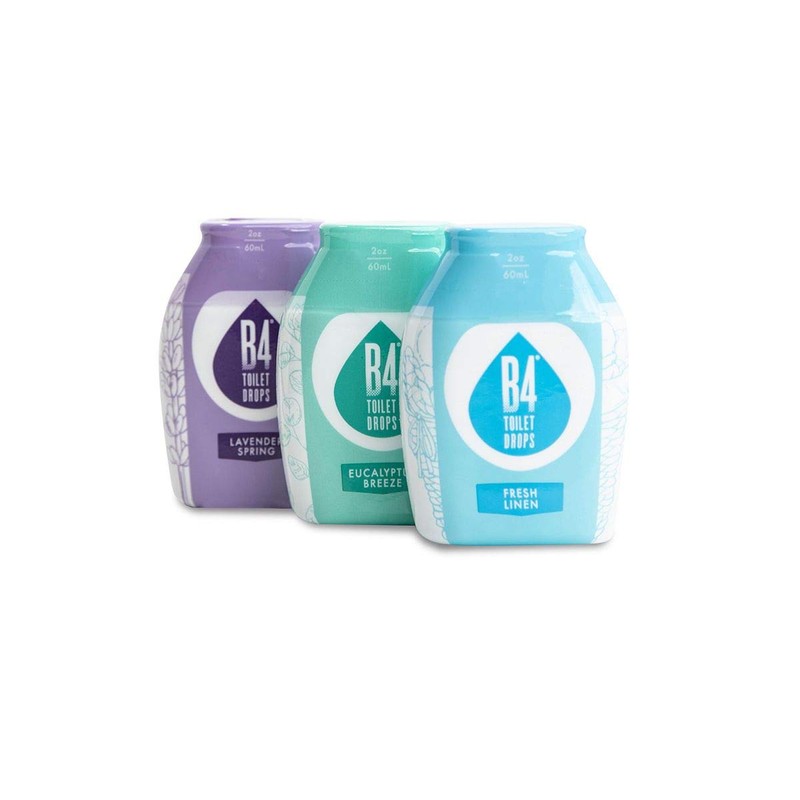 - B4 Toilet Drops: Leave the bathroom smelling fresh and clean with B4 Toilet Drops; Available in three varieties including Fresh Linen Scent, Eucalyptus Breeze Scent and Lavender Spring Scent
