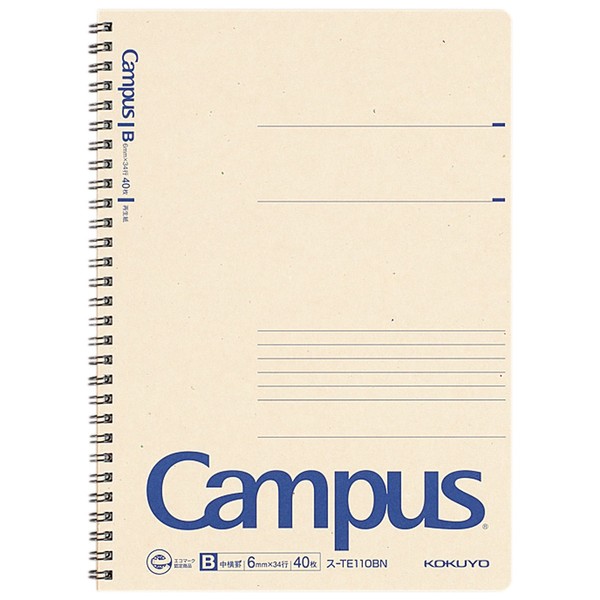 コクヨ キャンパス 再生紙ツインリングノート B5 B罫 40枚 ス-TE110BN