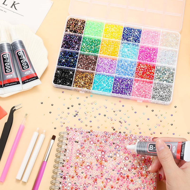 - Crafting rhinestones with glue kit comes with 31200PCS 3mm multicolored rhinestones of 24 colors and 4 B7000 glue.