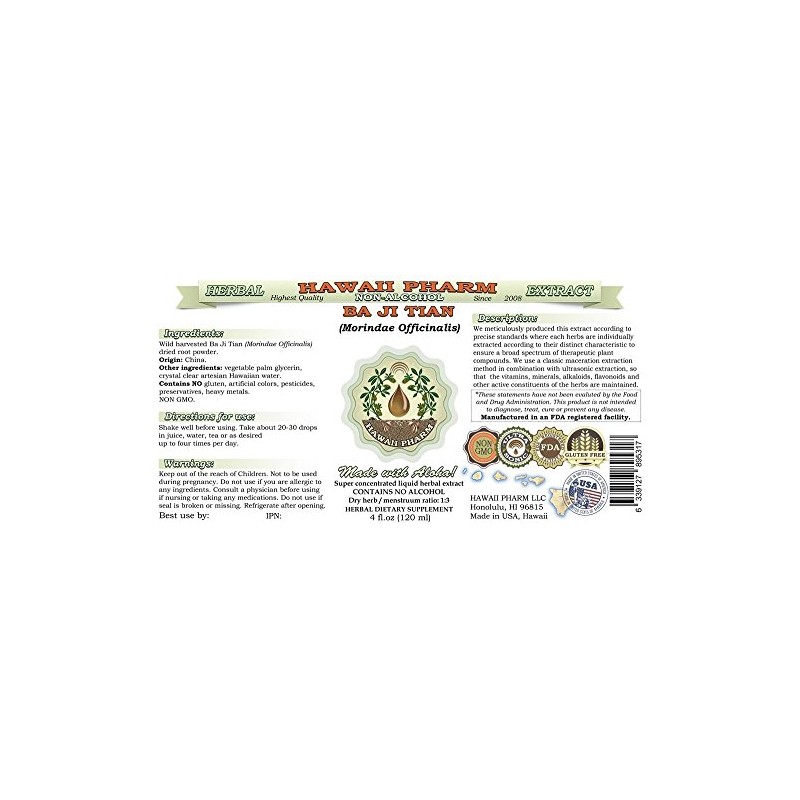 - High Quality Ba Ji Tian Alcohol-FREE liquid extract- we use classic conventional methods of extraction! We meticulously produce our extracts according to precise standards where each herb is extracted according to the distinct characteristic of each plant!
