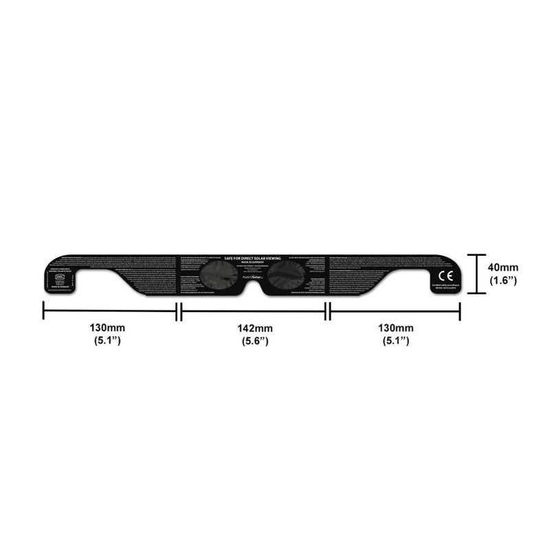 - CE / ISO certified: conforms to and meets the transmission requirements for eye safety: EN ISO 12312-2:2015 – Instructions in four languages (English, German, French, Spanish) on the inner side of the solar viewer