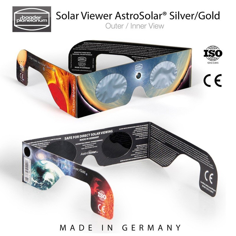 - Our Solar Viewer AstroSolar Silver/Gold – MADE IN GERMANY – safely protect your eyes for visual solar observation. This is THE solution to see the partial phase of Solar Eclipses or even big sunspots with your own eyes!