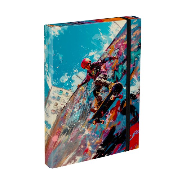 Baagl Notebook Box for School Bags - A4 Folder for Children with Elastic Band and Inner Flaps - Collection Folder with Elastic Band for Boys (Skate Park)