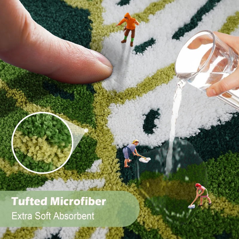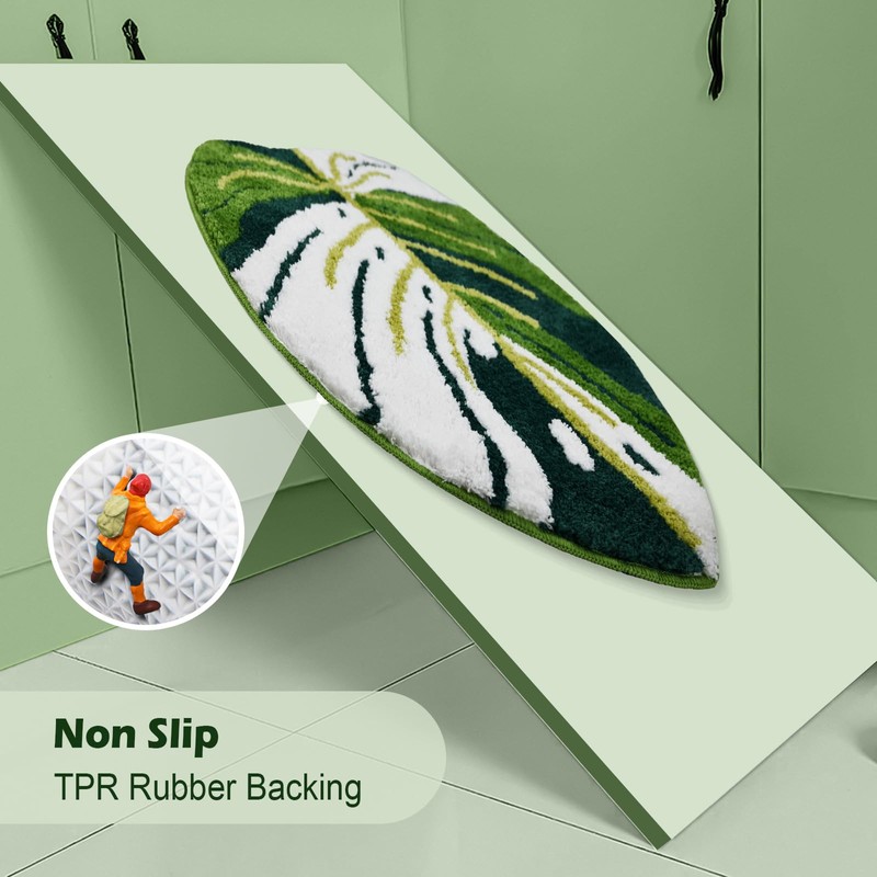 - 🌿【Leaf Bath Mat】: monstera look adds a touch of nature to your bathroom decor, Create a cheerful and playful atmosphere. Our unique bathroom rugs have a 3D stereoscopic visual effect, The fiber length of cute bath mat is different, The thickness of the fiber is 1". This is a complex production process designed to give your foot a more comfortable touch.