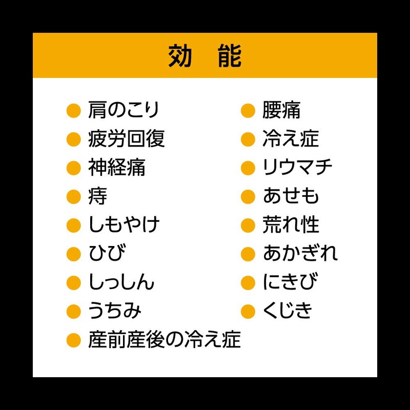 - Increases the effectiveness of a hot bath to help prevent fatigue, stiff shoulders, lower back pain, and cold diseases