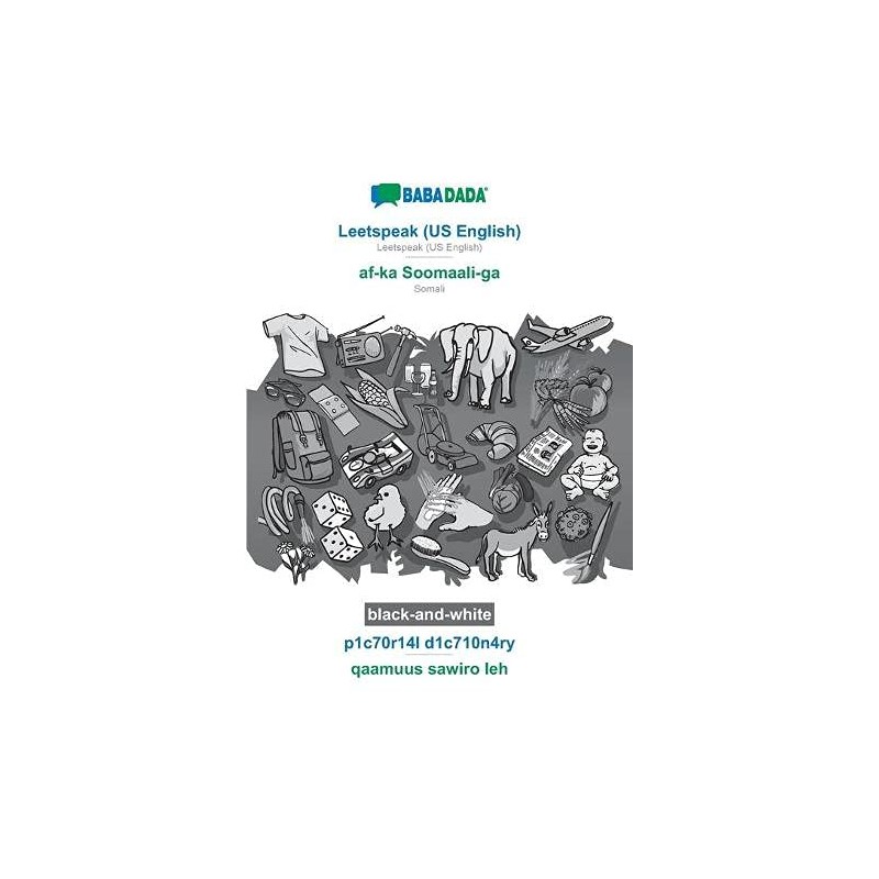 BABADADA black-and-white, Leetspeak (US English) - af-ka Soomaali-ga, p1c70r14l d1c710n4ry - qaamuus sawiro leh: Leetspeak (US English) - Somali, visual dictionary